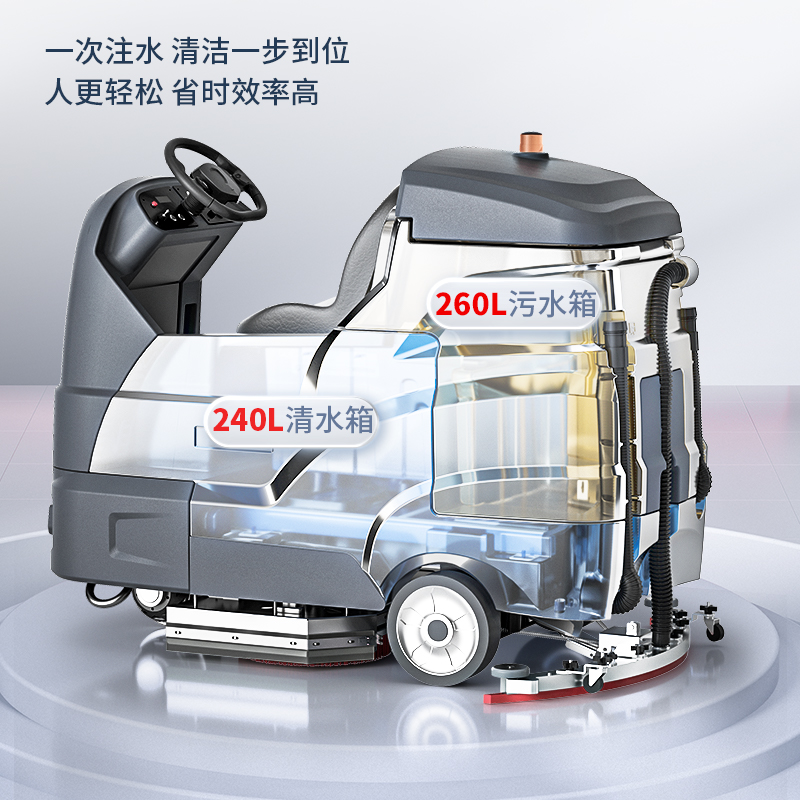 揚子工商業洗地機YZ-X9洗擦吸三合一,擁有240L清水箱和260L污水箱,無需頻繁注水換水,省事省力,高效清潔,650W刷盤電機*2,600W吸風電機,高速擦洗澎拜吸力,大續航一次充電可用6-8小時,續航持久效率翻倍,提供8800㎡/h的清潔效率。